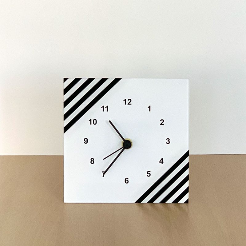 RELLOTGE DE DISSENY DE SOBRETAULA MODERN en format quadrat per decorar petits espais de la llar.