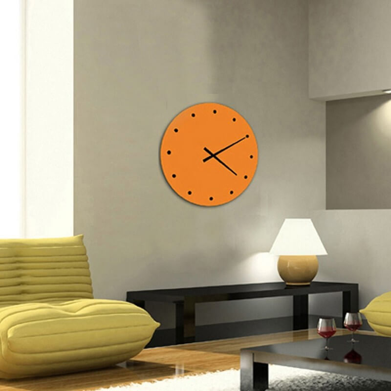 RELLOTGE DE PARED DE DISSENY en format rodó i en color taronja.