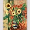 ABSTRACT PAINTING of a vase full of sunflower FLOWERS. Made in vertical format ideal to decorate minimalist environments.